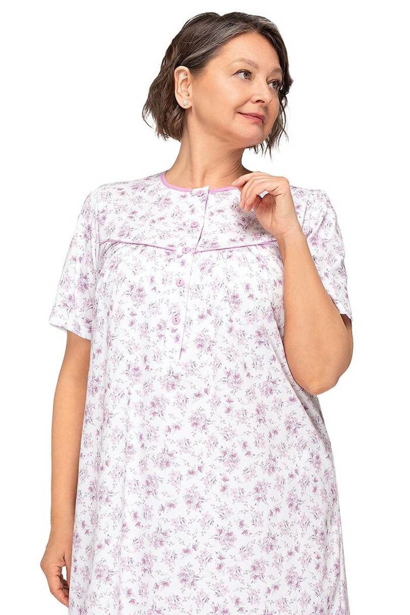 Dámske tričko s krátkymi rukávmi z mäkkej vzorovanej bavlny s digitálnou potlačou, otvoreným výstrihom, nariasenou hruďou a dĺžkou po kolená. materiál: 100% bavlna