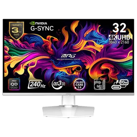 32" MSI MPG 321URXW QD-OLED biela / 3840 x 2160 / OLED / 16:9 / 0.03ms / 1.5M:1 / DP+HDMI +USB-C