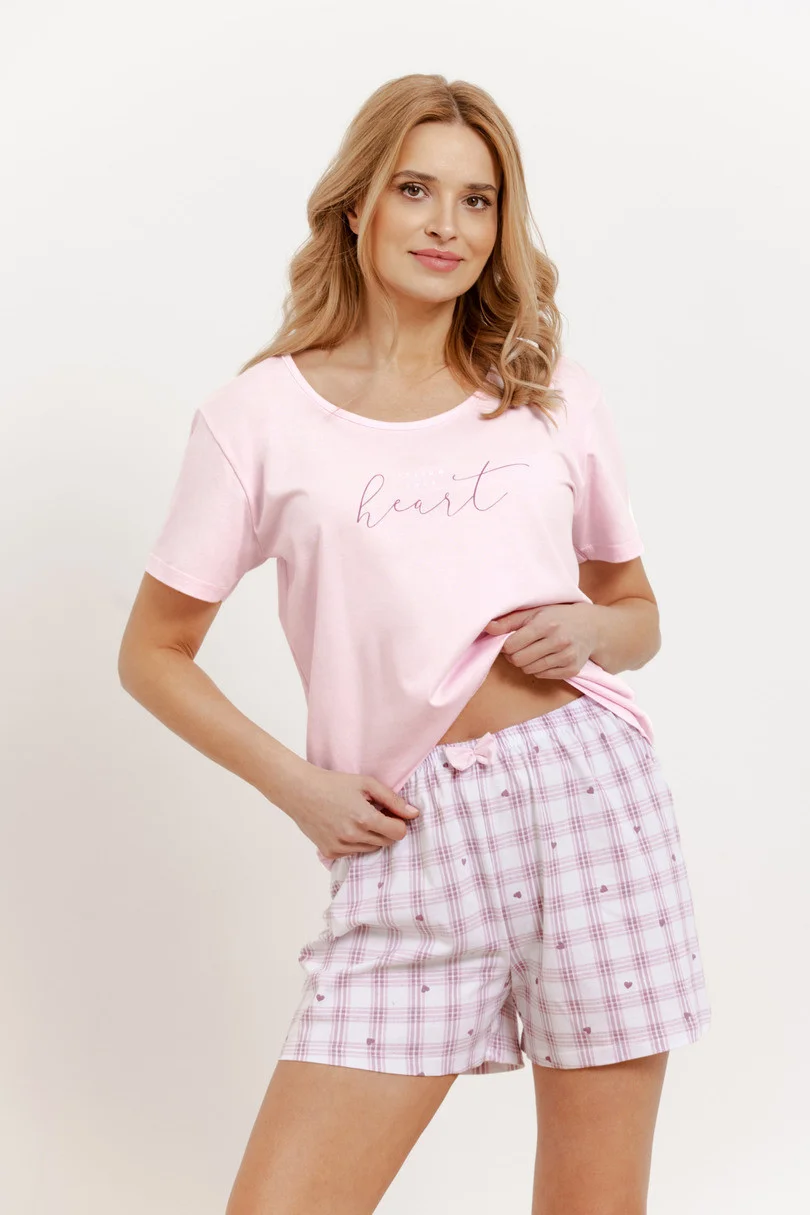Dámske pyžamo Arabella 3416 značky Taro je jedinečným návrhom na letné noci. Je vyrobené zo 100 % kvalitnej bavlny, zaručuje ľahkosť, vzdušnosť a maximálne pohodlie počas spánku.Pyžamo pozostáva z hladkého trička s krátkymi rukávmi a polkruhovým výstrihom, ktorý súprave dodáva jemnú eleganciu. Súpravu dopĺňajú krátke vzorované šortky, ktoré upútajú pozornosť módnym vzorom a pôvabnou mašľou v páse. Táto súprava je dokonalou kombináciou ženského štýlu a pohodlia - ideálna na teplé noci!Zloženie: 100 % bavlna