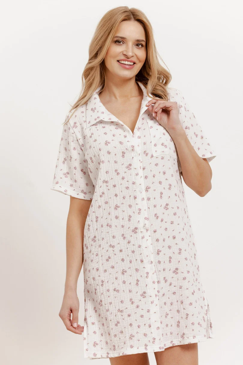 Dámska nočná košeľa Sindy 3421 značky Taro je kombináciou elegancie a pohodlia na každú noc. Je vyrobená zo 100 % mušelínovej bavlny, je výnimočne ľahká, vzdušná a jemná k pokožke, čo zaručuje pohodlie aj počas najteplejších nocí. Košeľa má krátke rukávy a zapínanie na gombíky po celej dĺžke, čo uľahčuje jej obliekanie a vyzliekanie. Na úrovni hrudníka sa nachádza praktické vrecko, ktoré dodáva košeli šarm a funkčnosť. Je to štýlová a pohodlná voľba na letné noci a domáci relax. Zloženie: 100 % bavlnený mušelín