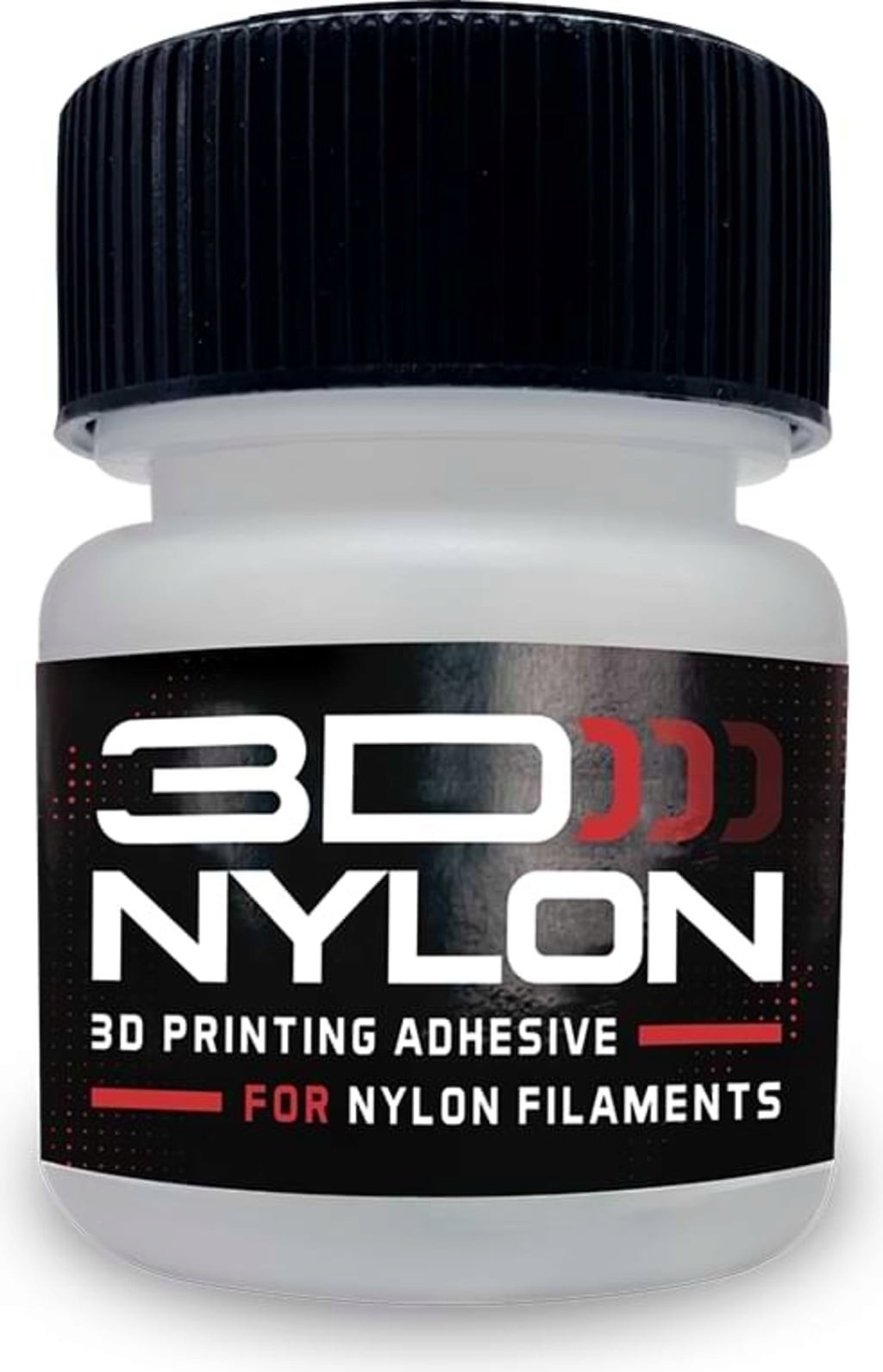 3DNYLON Adhesive je špeciálne vyvinuté adhézne lepidlo navrhnuté pre náročné filamenty, ako sú Nylon (PA), PA-CF, PA-GF a ďalšie technické materiály, ktoré majú pri tlači tendenciu krútiť sa. Poskytuje stabilnú priľnavosť aj pri veľkých dieloch a predstavuje účinnú, čistú a cenovo dostupnú alternatívu k bežným metódam, ako je kaptonová páska, lepidlá alebo rôzne domáce zmesi.