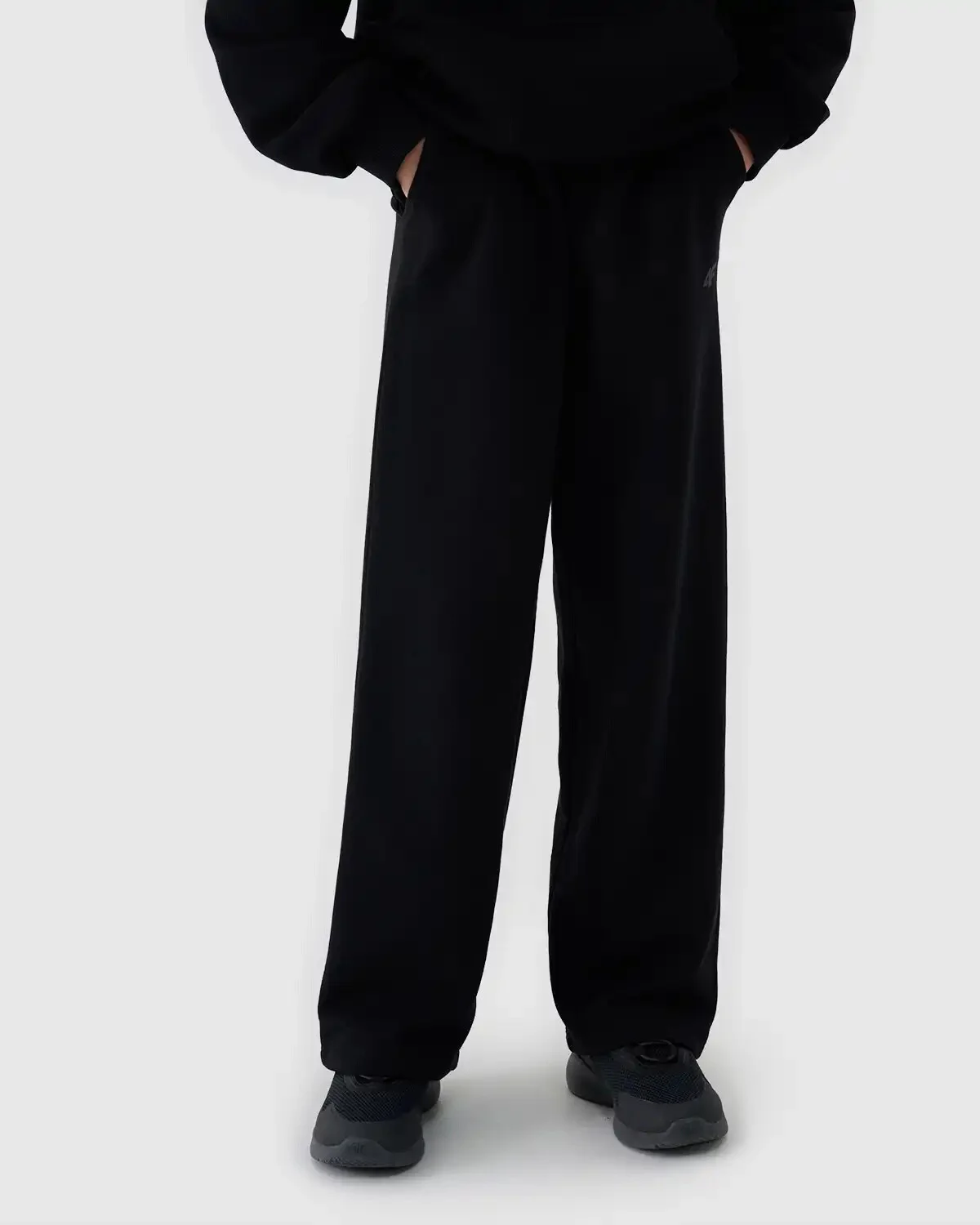 Dievčenské tepláky sú pohodlným a štýlovým kúskom do vášho šatníka na voľný čas. Majú moderný široký strih, ktorý zaručuje voľnosť pohybu a maximálne pohodlie pri nosení. Elastický pás sa prispôsobí postave a poskytuje pevné, ale pohodlné nosenie. Nohavice sú vyrobené z mäkkého, príjemného materiálu, ktorý je ideálny na každodenné nosenie a relaxáciu. Praktickosť nohaviciam dodávajú bočné vrecká.