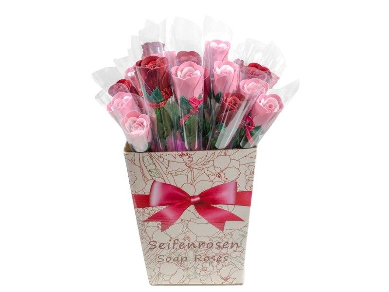 Mydlová ruža na stonke zabalená do celofánu ozdobená mašľou s kamienkom je romantickým darčekom k akémukoľvek výročiu.