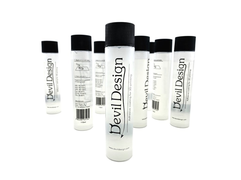 Produkt je rozpustný vo vode a ľahko sa čistí. Zvýšenie adhézie je odskúšané pre materiály: PLA, PLA-ST, ABS, ABS +, ABS-T, HIPS, ASA, TPU, PET-G.