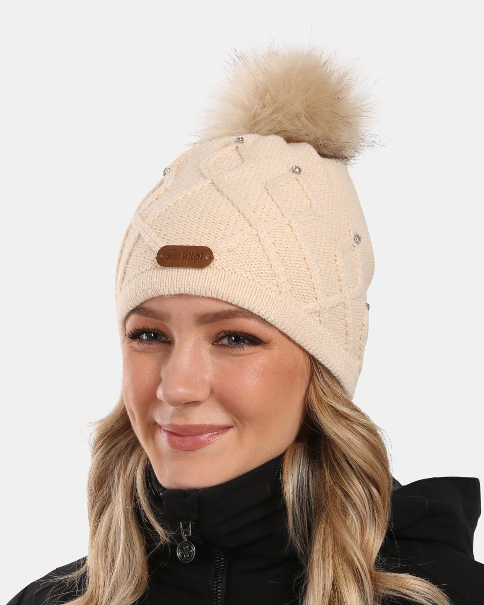 Elegantná dámska čiapka, to je Kilpi ALEN-W. Nórsky pletený vzor, doplnený jemnou bambulou z umelej kožušiny. Vnútorná podšívka z mikroflísu je navrhnutá tak, aby vás udržala v teple. Trblietavé umelé kamienky, spestria váš zimný outfit, nech už ste kdekoľvek. Táto čiapka Kilpi ALEN-W, ktorú ponúkame v béžovej a čiernej farbe, vás zahreje a urobí neprehliadnuteľnou. modelka na fotografii: veľkosť 36, výška 170 cm, obvod hrudníka 84 cm, obvod pása 64 cm, obvod bokov 92 cm. materiálové zloženie: