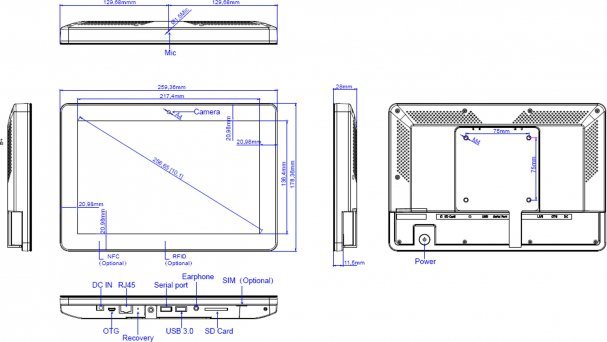 Allnet Meetingraum RGB LED Tablet 10 Zoll RK3568 Android 11 und NFC/RFID Farbe schwarz