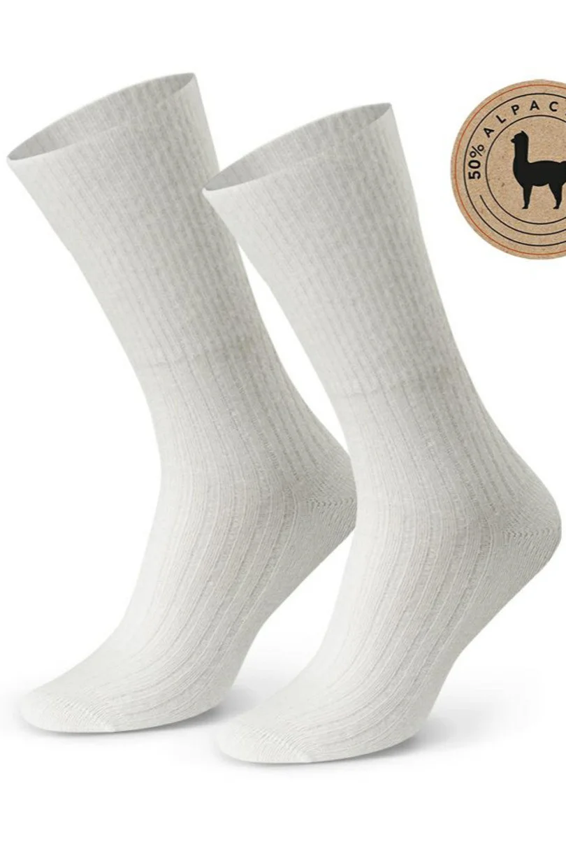 Ponožky z vlny alpaky, ktorá je trikrát silnejšia ako ovčia vlna, neabsorbujú pachy, majú hypoalergénne a tepelnoizolačné vlastnosti. Ich rebrovaná štruktúra zabraňuje zbytočnému tlaku na chodidlo..