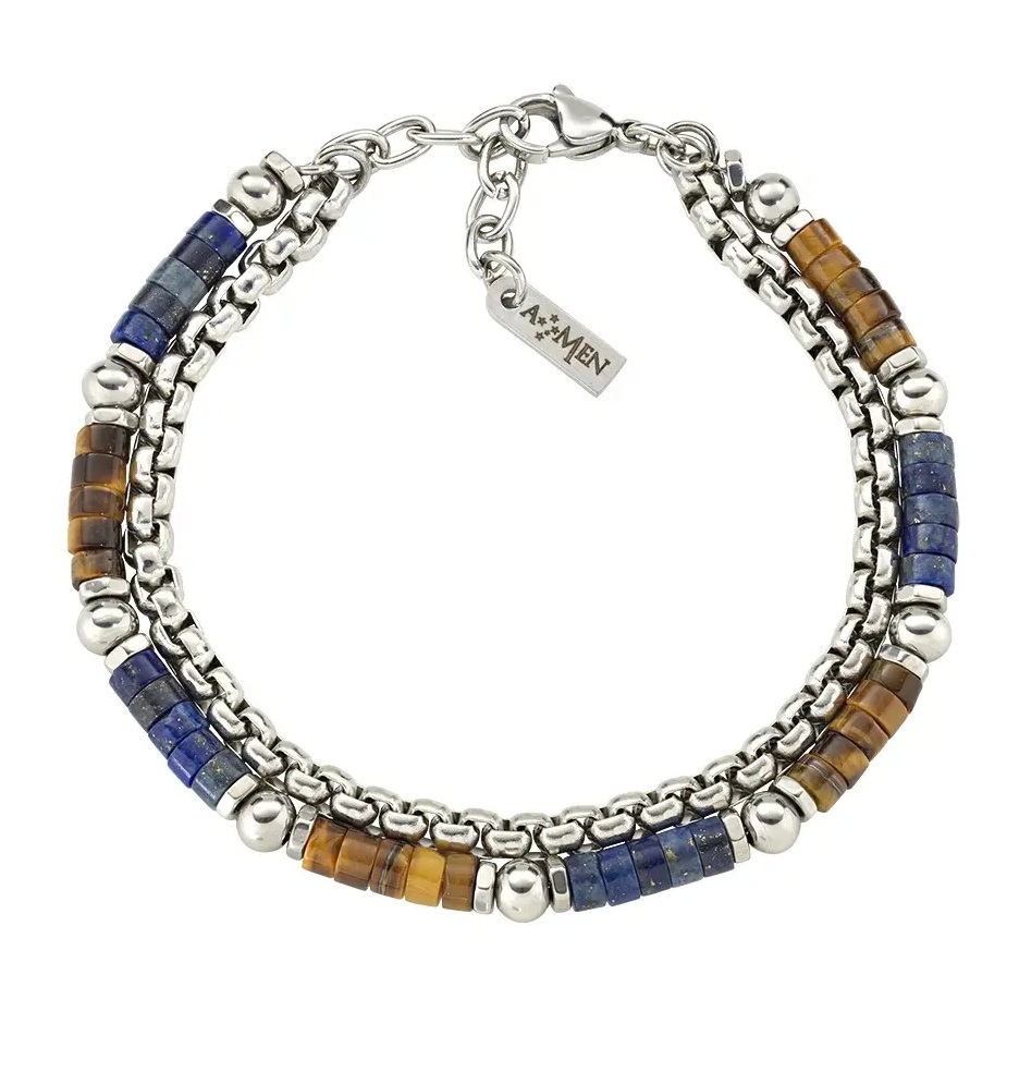 Amen Dvojitý pánsky náramok s tigriím okom a lazuritom ACBR2BBBLM