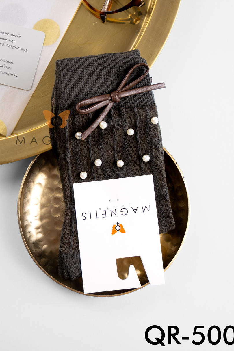 Ponožky QR-5003 od značky Magnetis sú dokonalou kombináciou elegancie a každodenného pohodlia. sú vyrobené z kvalitnej bavlny s elastanom, sú mäkké, pružné a príjemné na pokožku. ich jedinečný dizajn je pútavý - zdobia ho jemné perličky a kožená mašľa, ktorá dodáva vzhľadu ženský šarm a eleganciu. vďaka jemnému pletenému kockovanému vzoru vyzerajú ponožky veľmi štýlovo - či už v kombinácii s čižmami, alebo ako doplnok domáceho vzhľadu. Ideálne ako darček alebo ako doplnok do vášho jesenného/zimného šatníka.