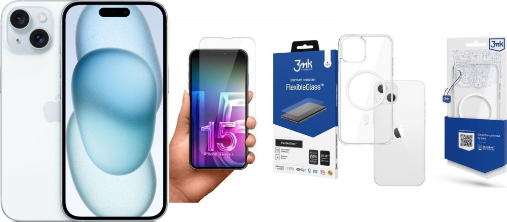 Apple iPhone 15 128GB Blue (MTP43) + FlexibleGlass + Etui MagCase
