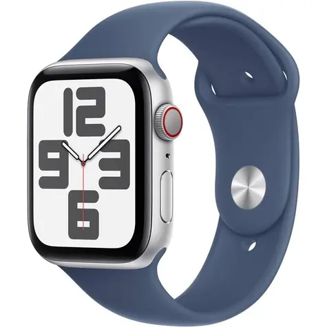 Apple Watch SE (2024) GPS + Cellular 44mm Strieborné hliníkové telo - Denimový športový remienok S/M / 140-190 mm (MXGP3QC/A)