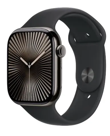 Apple Watch Series 10 GPS+Cellular 42mm Bridlicovo šedé titánové telo - Čierny športový remienok (M/L) / 150-200 mm (MWXH3QC/A)