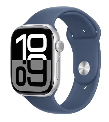 Apple Watch Series 10 GPS+Cellular 42mm Strieborné hliníkové telo - Denimový športový remienok (S/M) / 130-180 mm