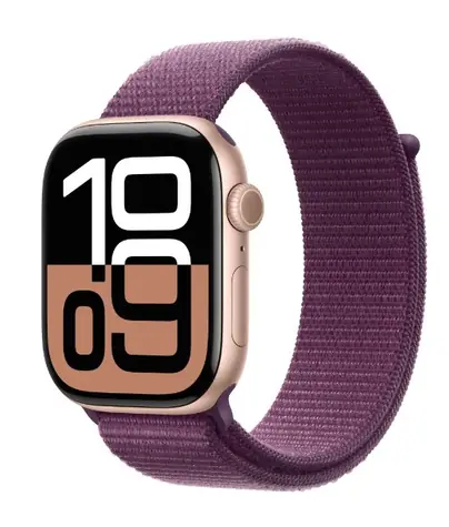 Apple Watch Series 10 GPS+Cellular 46mm Ružovo zlaté hliníkové telo - Slivkový prevliekací remienok / 130-200 mm