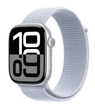 Apple Watch Series 10 GPS+Cellular 46mm Strieborné hliníkové telo - Oblačne modrý prevliekací remienok / 130-200 mm