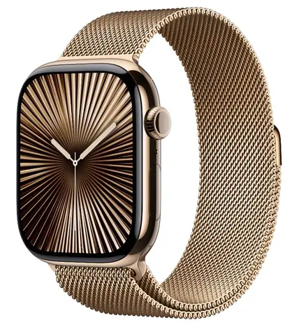 Apple Watch Series 10 GPS+Cellular 46mm Zlaté titánové telo - Zlatý milánsky ťah (M/L) / 150-200 mm