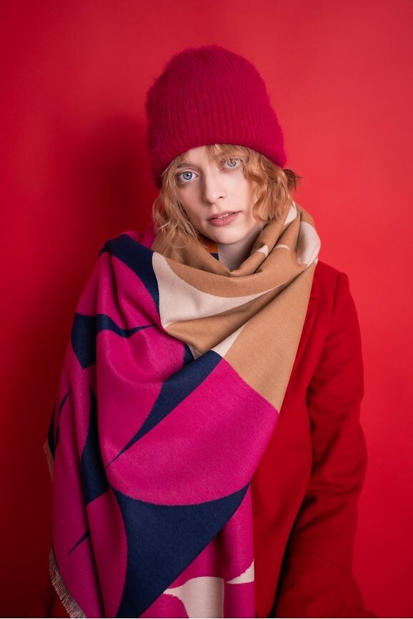 Dámska šatka v intenzívnych farbách - zdobené geometrickými vzormi - látka príjemná na dotyk - ideálny na každodenné nosenie a mestský štýl - dĺžka 200 cm Zloženie: 80 % polyester, 20 % bavlna