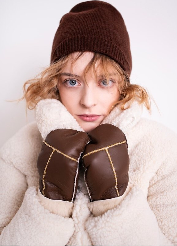 Dámske rukavice s jedným prstom - kožené - s ozdobným prešívaním - hrubá izolačná vrstva vo vnútri Zloženie: 100 % prírodná koža, 100 % vlna (podšívka)