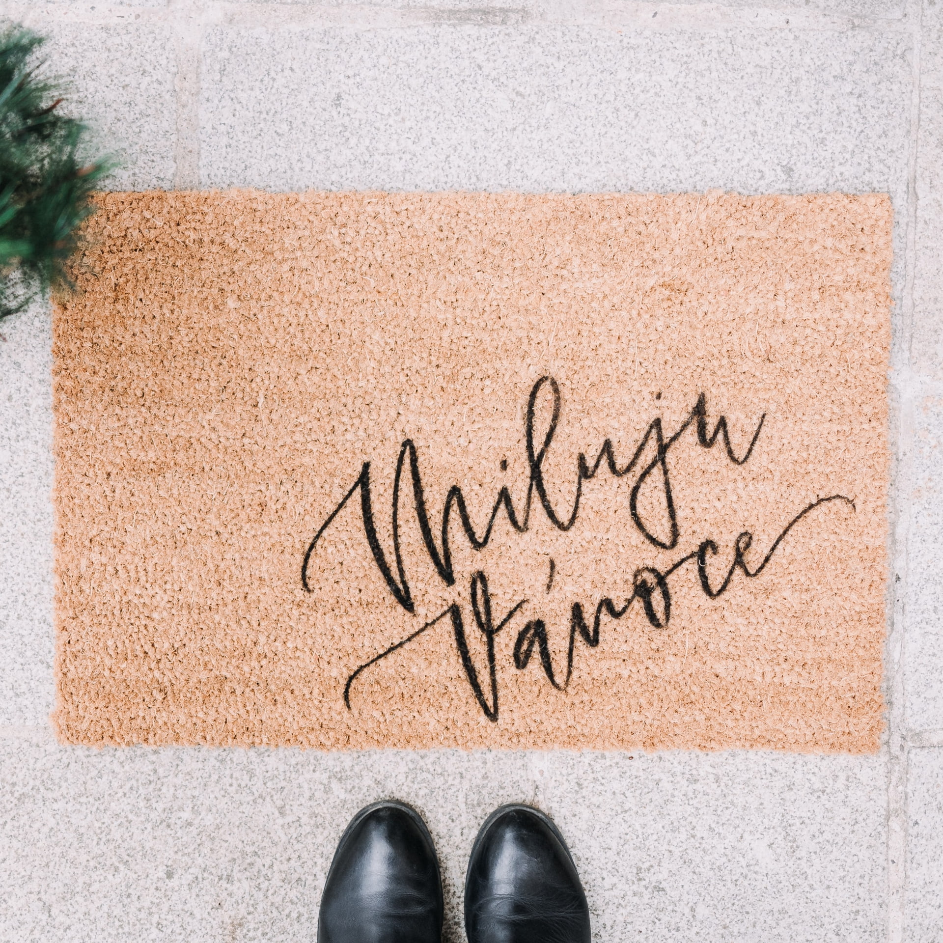 Originálnu rohožku zdobí jemný čierny nápis Miluju Vánoce z pera modernej kaligrafky Zuzky Bartíkovej alias Flatwhite Lettering , ktorý dodá eleganciu každému vchodu, chodbe aj predsieni. Vďaka decentnému nápisu v rohu môžete rohožku bez problému skombinovať s ďalšími sezónnymi doplnkami, ako sú lampáše alebo vianoční škriatkovia bez toho, aby sa navzájom vizuálne rušili.