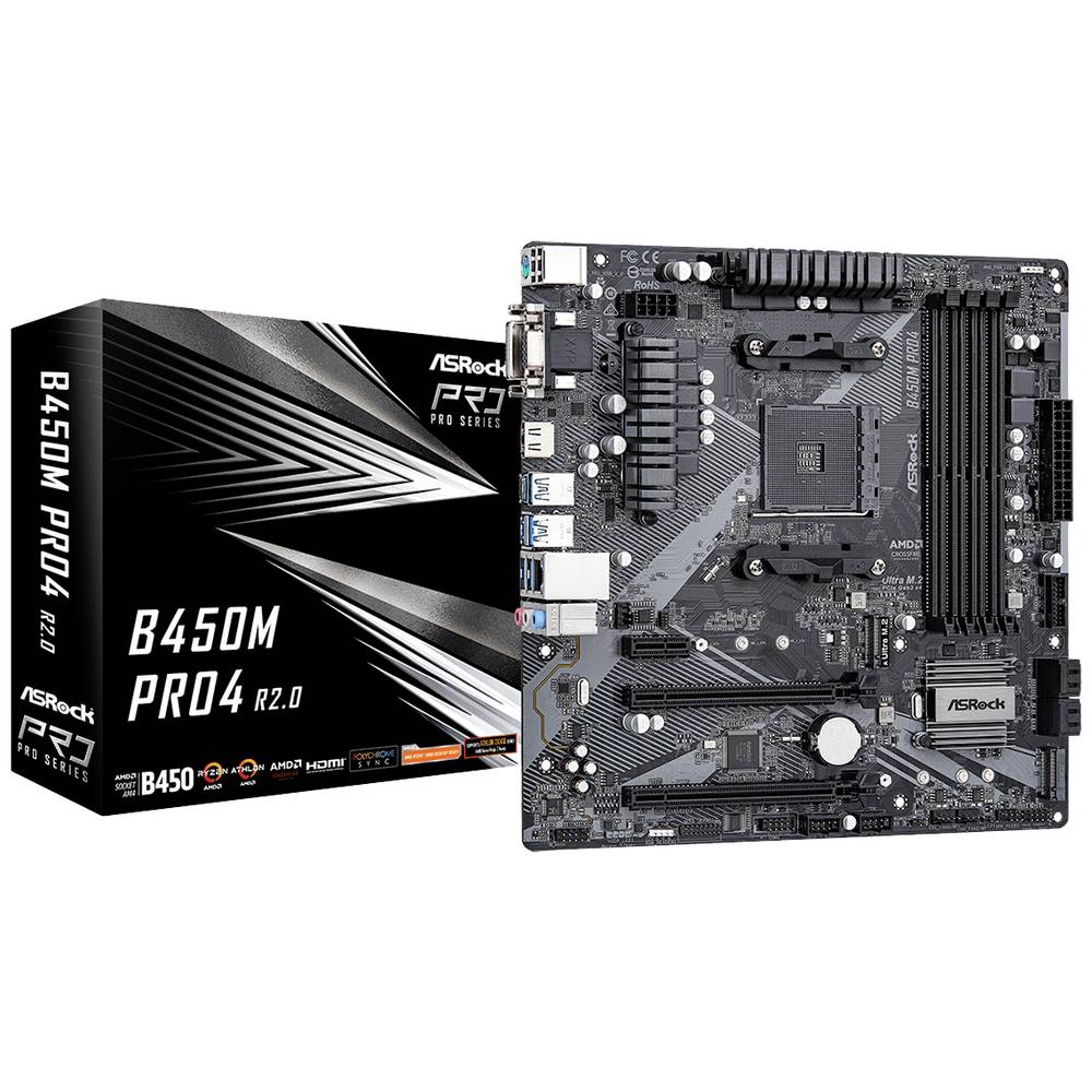 ASRock B450M Pro4 R2.0 Základná doska Socket AMD AM4 Tvarový faktor Micro-ATX Čipová sada základne