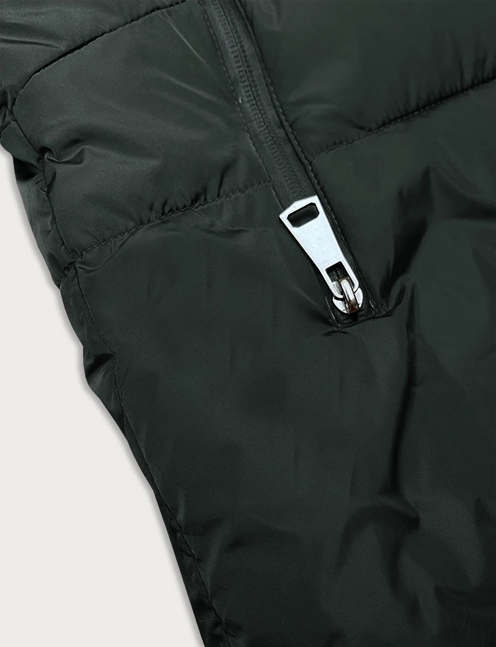 Pri výbere veľkosti venujte pozornosť nižšie uvedenej veľkostnej tabuľke. Veľkosti nezodpovedajú oblečeniu, ktoré bežne nosíte. Bunda so šikmým zapínaním na zips Bunda je zateplená syntetickou páperovou výplňou, má kožušinovú podšívku, má dve vrecká a zapína sa na dvojcestný zips. Model má kapucňu, ktorá sa nedá odopnúť. Bunda má stojatý golier so zapínaním na patentky. Model má dĺžku do polovice stehien. Zloženie: 100 % polyester. Pri výbere bundy sa riaďte rozmermi uvedenými v tabuľke veľkostí.