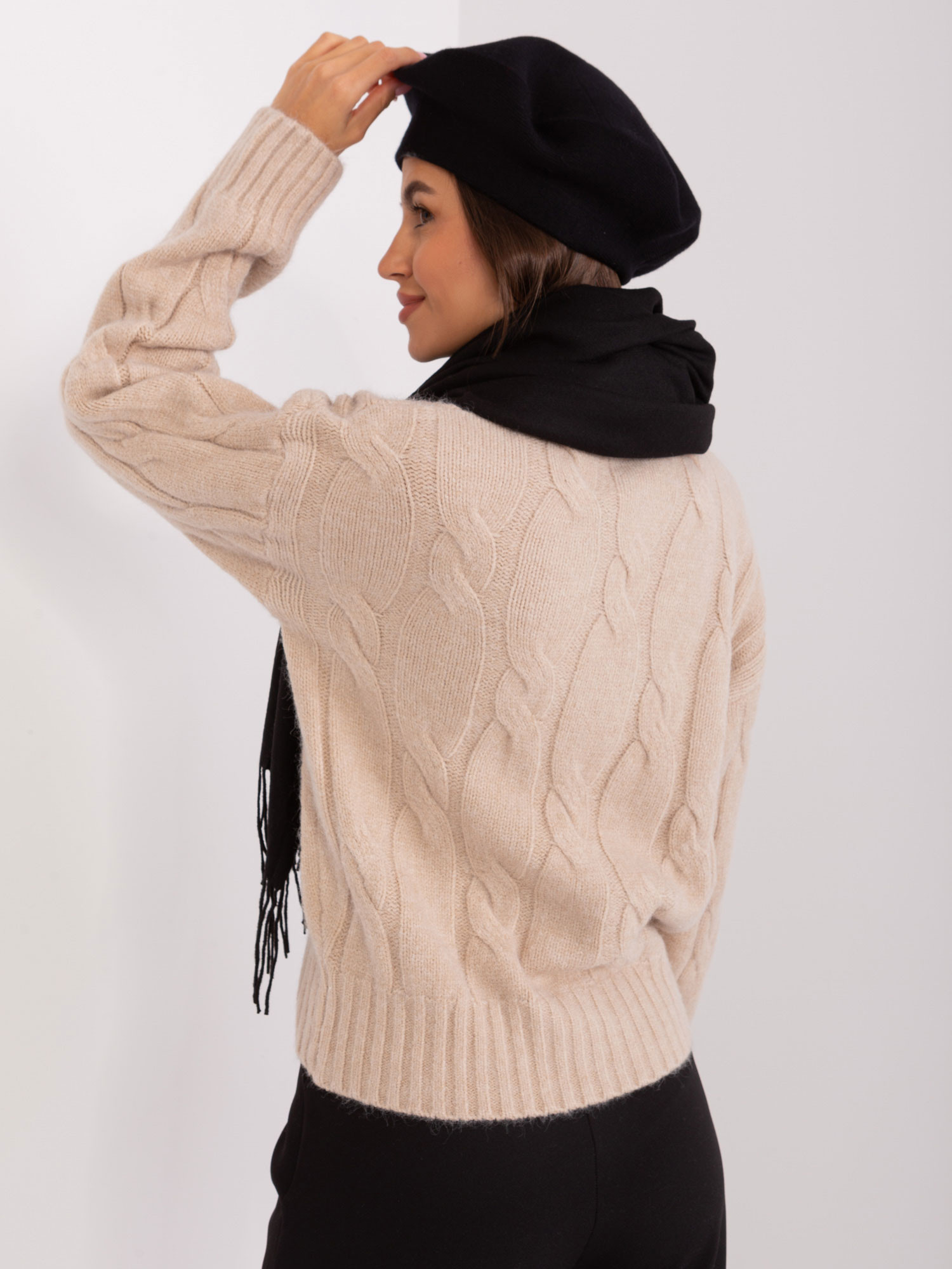 Čierna jednofarebná dámska baretka . aT-CZ-231305.82P dominantný vzor: bez vzoru