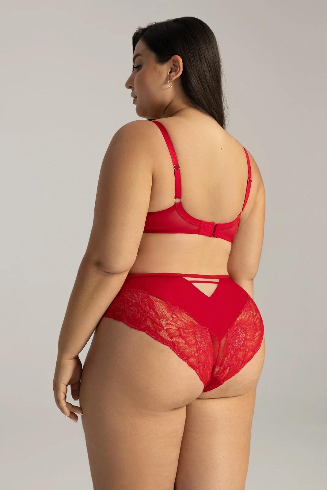 Mäkká podprsenka - košíčky z tmavočervenej kvetinovej čipky s podšívkou - podšité béžovou markízovou tkaninou, s bočnými výstuhami - horná línia z priehľadnej sieťoviny podšitej lemovaním - nastaviteľné elastické ramienka nad líniou poprsia - nastaviteľné, neodnímateľné ramienka - pevná sieťovina po obvode bez bočných výstuh - zapínanie na dva alebo tri háčiky s trojcestným nastavením - model pôsobivo odhaľuje poprsie a zdôrazňuje dekolt - konštrukcia K-1824 Zloženie: 90 % polyamid, 10 % elastan