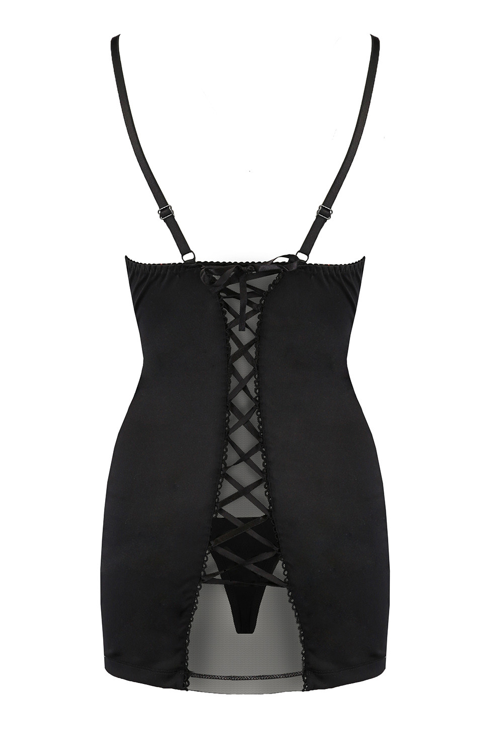 Nočná bielizeň Melek chemise značky Avanua je vyrobená zo 75 % z polyesteru, 15 % z polyamidu a 10 % z elastanu, má kostice, nastaviteľné ramienka a drôtiky na podporu a tvarovanie pŕs.