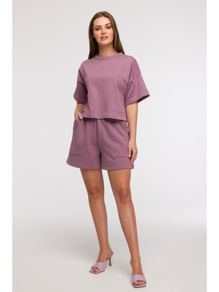 MATERIÁL Materiál: Silná mikinová tkanina 90% bavlna 10% polyester PODROBNOSTI O PRODUKTU Výstřih: Kulatý Kapsy: Žádné Vzor: Jednobarevný Podšívka: Žádná Zapínání: Žádné / Střih svetru Model: B294 Navrženo a vyrobeno v Polsku Střih: Volná zkrácená mikina Tvar: Rovná, krabicová silueta Délka: Do pasu Délka rukávu: Krátké, široké rukávy Použití: Ležérní, každodenní styling - ideální na dovolenou Typ postavy: Vhodné pro většinu postav, ideální pro sloupovité (obdélníkové) tvary - zkrácený střih opticky vytváří dojem pasu a dodává proporce Modelka na fotografii je vysoká 170 cm a má na sobě velikost SVEĽKOSŤS/ML/XL2XL/3XLA53 cm59 cm65cmB50cm54cm58cmC38cm39cm40cm