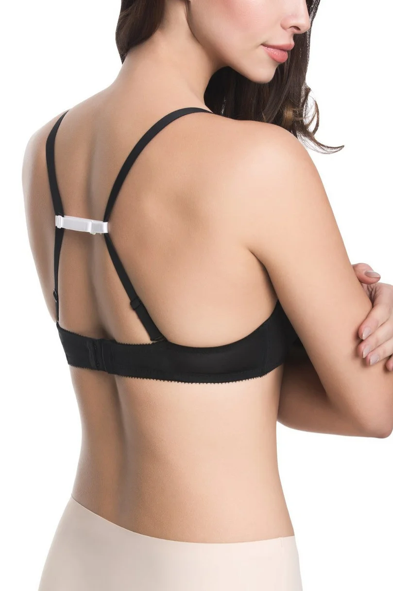 Šnúrka zabraňuje skĺznutiu ramienok podprsenky. Umožňuje ľahké a diskrétne zakrytie ramenných popruhov v odevoch s vykrojeným chrbtom. Jeho dĺžka je nastaviteľná. Je k dispozícii v štyroch farbách - priehľadné, biele, čierne a béžové.Zloženie: 80% POLIESTER, 20% ELASTAN. Zloženie (priehľadný pruh): 95% POLYURETÁN, 5% POLYSTR