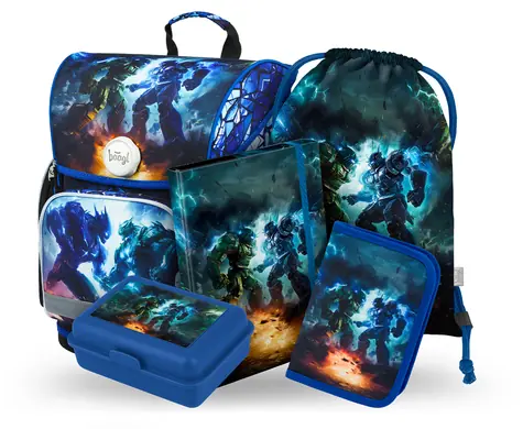 BAAGL SET 5 - Školský set Ergo Drak / aktovka / peračník / vrecko / dosky / box (A-33480)
