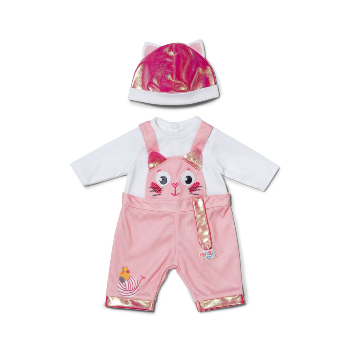 Ružový overal s čiapočkou pre bábiku BABY born zdobia roztomilé saténové volániky a plameniak, ktorý oživuje šaty krásnym detailom. Strieborné hviezdičky dotvárajú celkový lesk outfitu. Overal je vhodný pre deti od troch rokov, ktoré rady obliekanie svojich bábik pretvárajú na zábavnú hru.