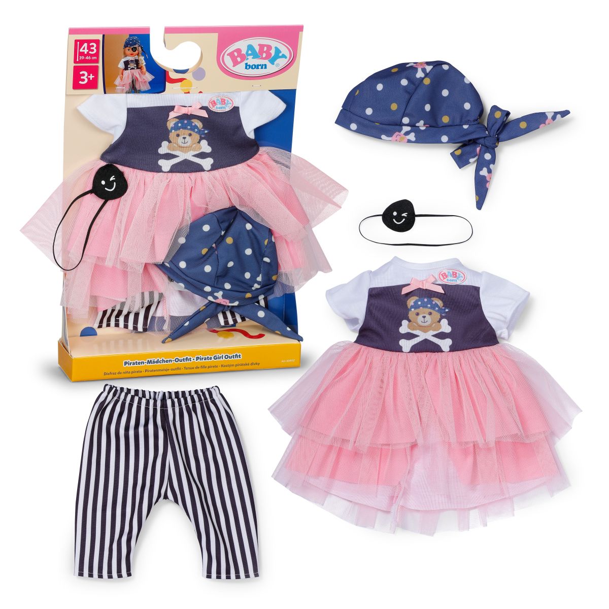 BABY born Šatôčky Pirátka prinášajú veľké dobrodružstvo pre malé pirátky milujúce hru s bábikami.