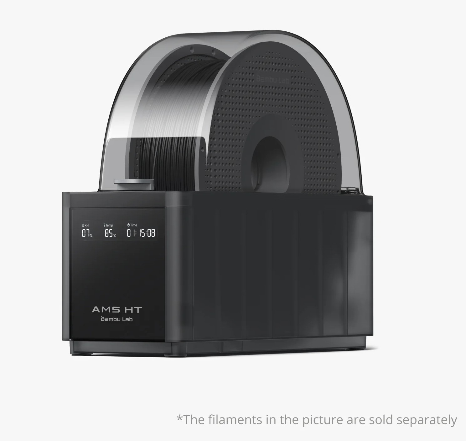 - Kompatibilita: AMS HT je kompatibilný so všetkými tlačiarňami Bambu Lab, vrátane modelov H2D, X1, P1 a A1.