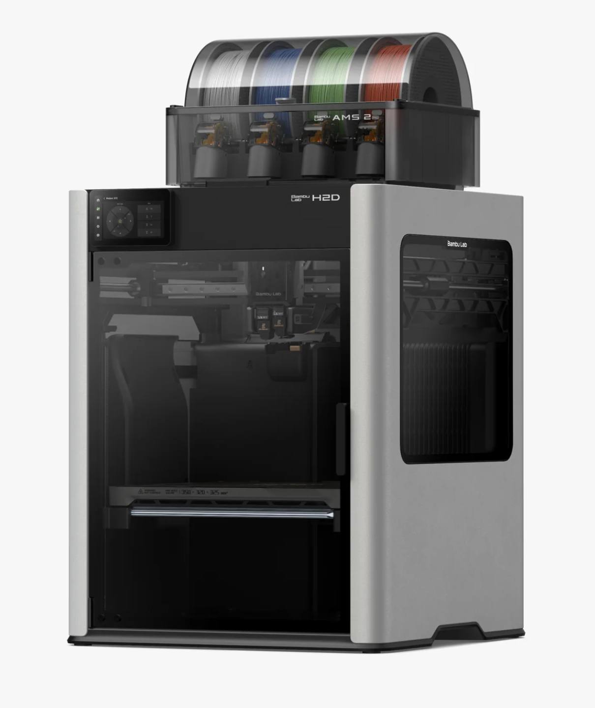 Špeciálne vyvinutý vysokoprietokový hotend tlačiarne H2D zabezpečuje vysokorýchlostnú tlač až 600 mm/s. Je navrhnutý pre konzistentný výkon a eliminuje obmedzenia prietoku počas tlače, čo umožňuje nepretržitú tlač bez ohľadu na veľkosť alebo zložitosť modelu. Systém servomotorov PMSM vyvinutý spoločnosťou Bambu Lab tvorí inteligentný systém riadenia extrúzie. Vykonáva 20kHz vzorkovanie momentu/odporu a polohy pre dynamickú moduláciu elektromagnetického vektora. Stabilizuje vytláčanie a detekuje zaseknutie alebo upchatie filamentu.