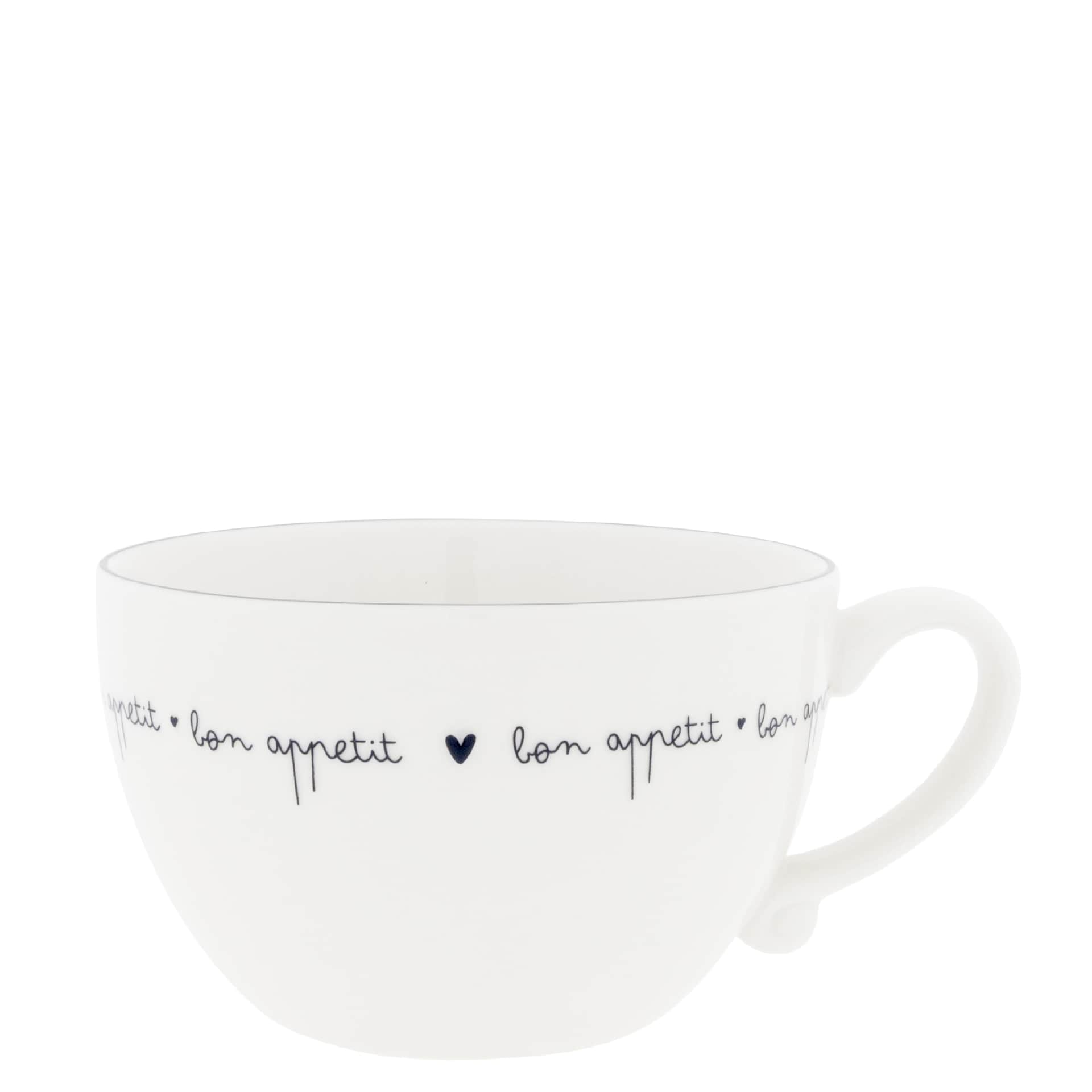 Bielu glazúru zdobí dookola nápis "bon appetit" a nechýba malé čierne srdiečko, ktoré je pro túto značku typické. objem 450 ml / priemer 13 cm / výška 8,5 cm Vyrobené z keramiky.