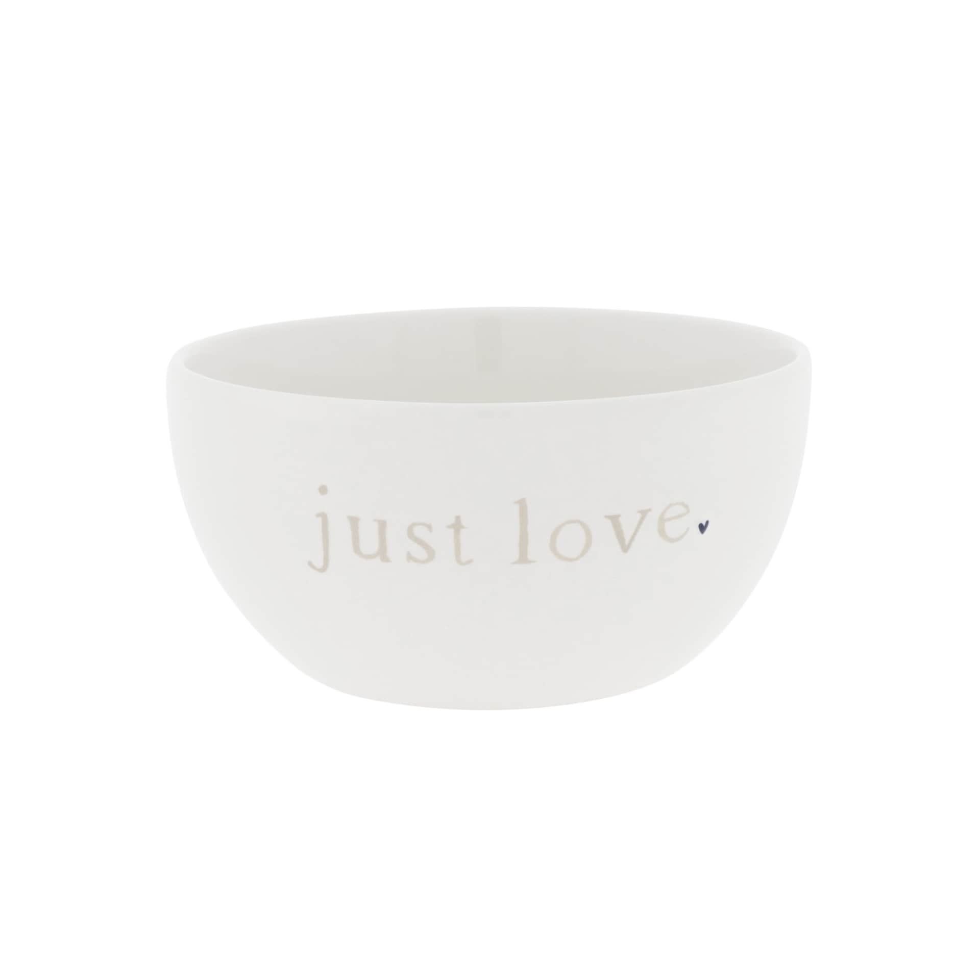 Misku zdobí zamilovaný nápis Just love a na druhej strane drobné čierne srdiečko, charakteristické pre túto značku. Krásne bude vyzerať aj na prestretom stole, či už v nej budete servírovať ovocný šalát alebo sušené ovocie alebo slanú pochúťku. objem 300 ml / priemer 14,5 cm / výška 7 cm Vyrobené z keramiky.