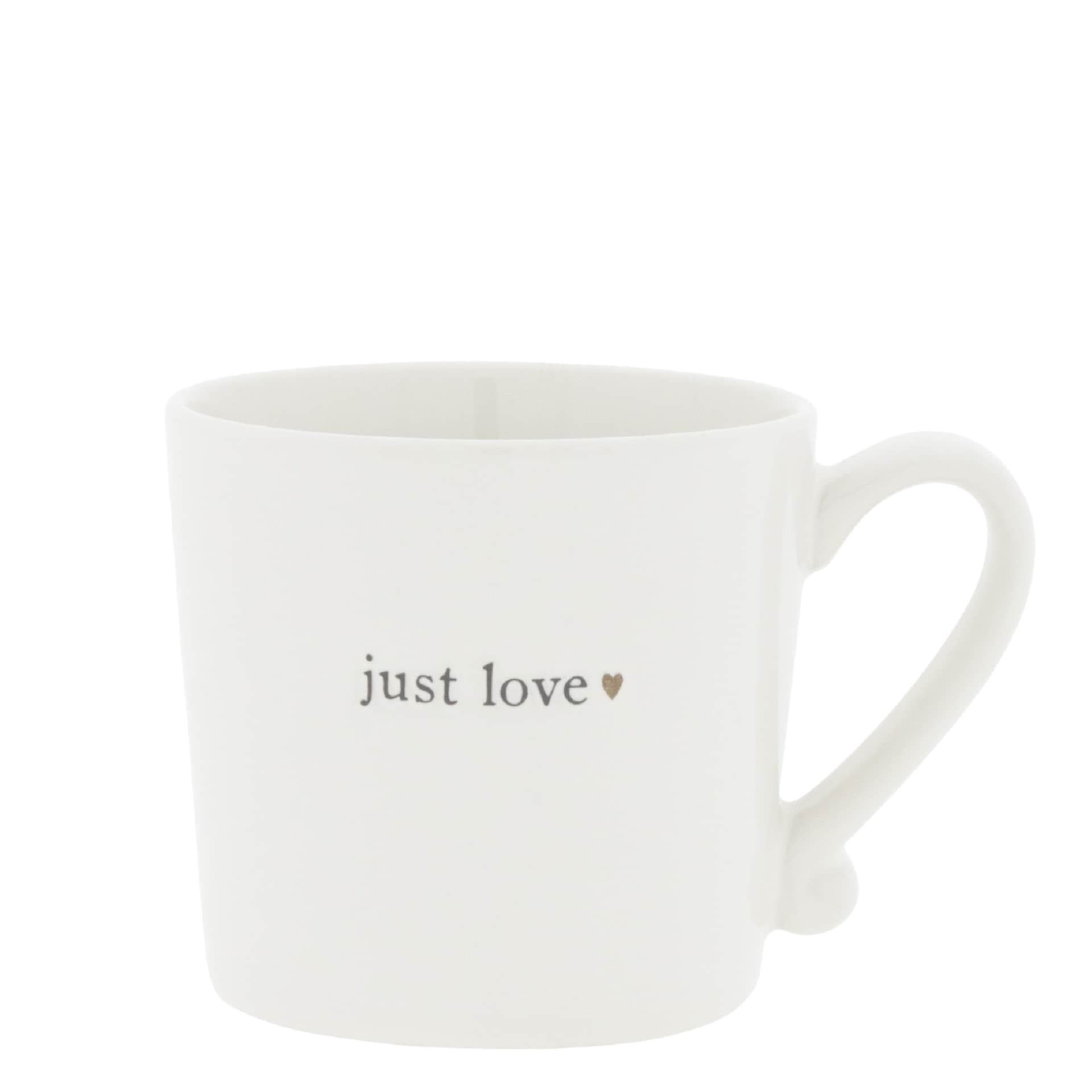 Hrnček zdobí jednoduchý motív malého čierneho srdca, ktorý je pre túto značku typický, a nápis "just love"(práve láska). Bude sa hodiť k iným kúskom tejto holandskej značky, ako aj k riadu, ktorý už máte v kuchyni. objem 200 ml / priemer 8 cm / výška 6 cm Vyrobené z keramiky.