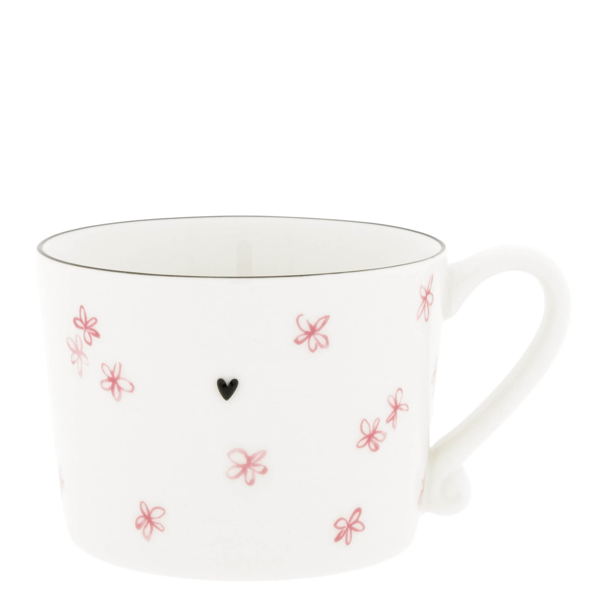 Bílou glazuru zdobí motiv drobných růžových květinek, které jsou ručně malované. A nechybí malé černé srdíčko, které je pro tuto značku typické. Doplnit ho můžete i dalšími kousky ze stejné kolekce keramického nádobí a vše si hezky sladit. objem 240 ml / průměr 8,5 cm / výška 7 cm Vyrobeno z keramiky.