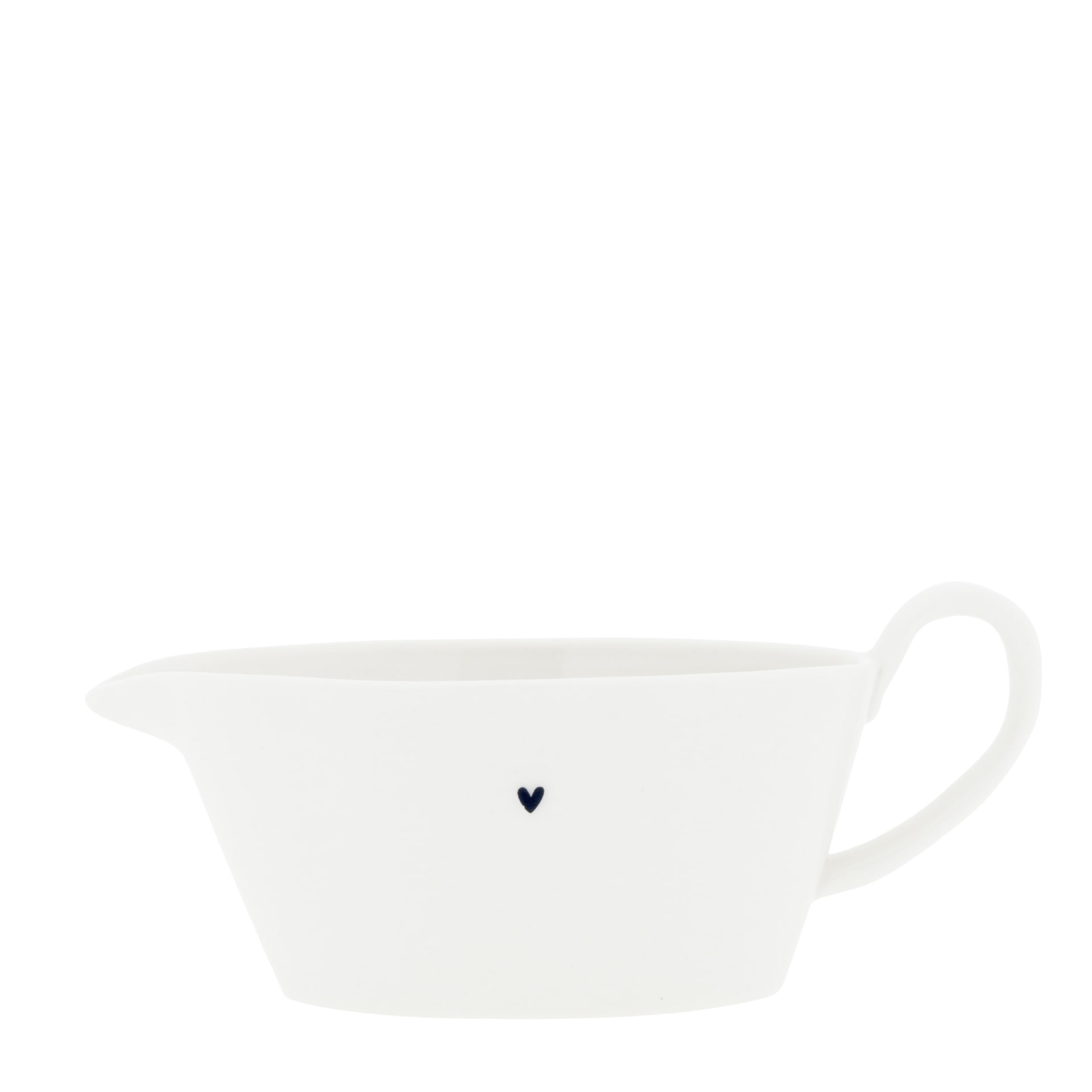 Omáčnik je vyrobený z keramiky s bielou glazúrou a malým čiernym srdiečkom, ktoré je typické pre túto obľúbenú značku.