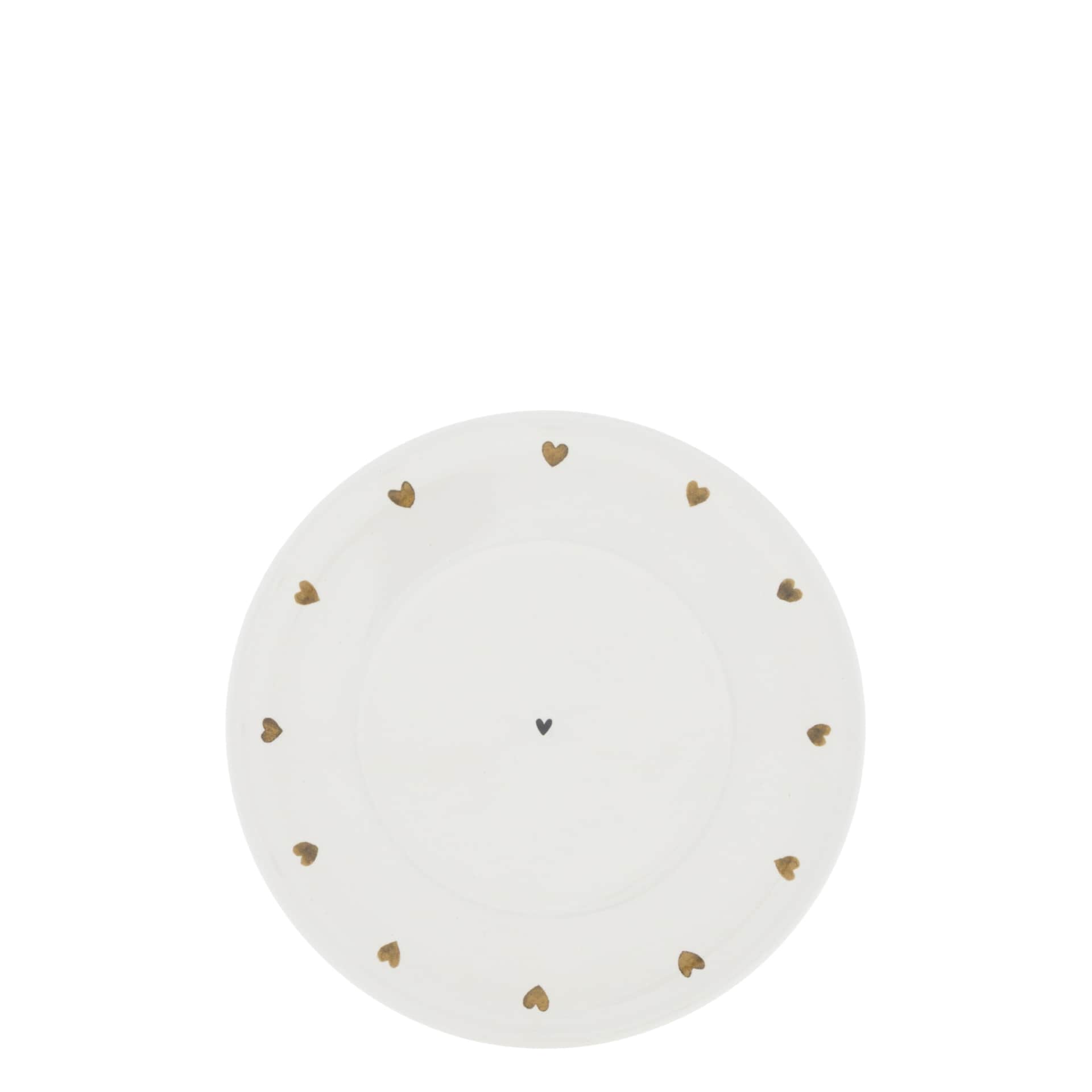 Po celom obvode ho zdobia jemné srdiečka v akvarelovej béžovej farbe a malé čierne srdiečko uprostred charakteristické pre túto značku. Vychutnajte si popoludňajšiu kávu alebo šálku dobrého čaju ešte viac. priemer 15 cm Vyrobené z keramiky.