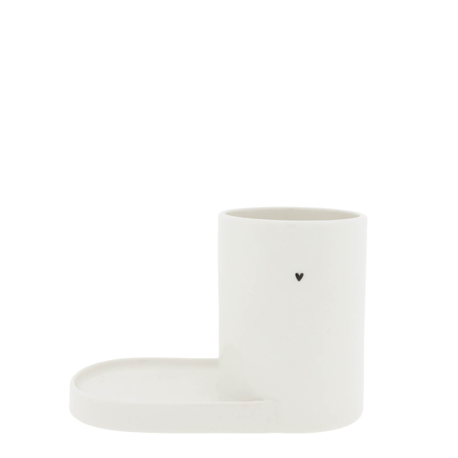 Stojan je vyrobený z keramiky s bielou glazúrou a zdobí ho jednoduchý motív malého čierneho srdca, ktorý je pre túto značku typický. výška 13 cm / šírka 19 cm / hĺbka 10 cm Vyrobené z keramiky.