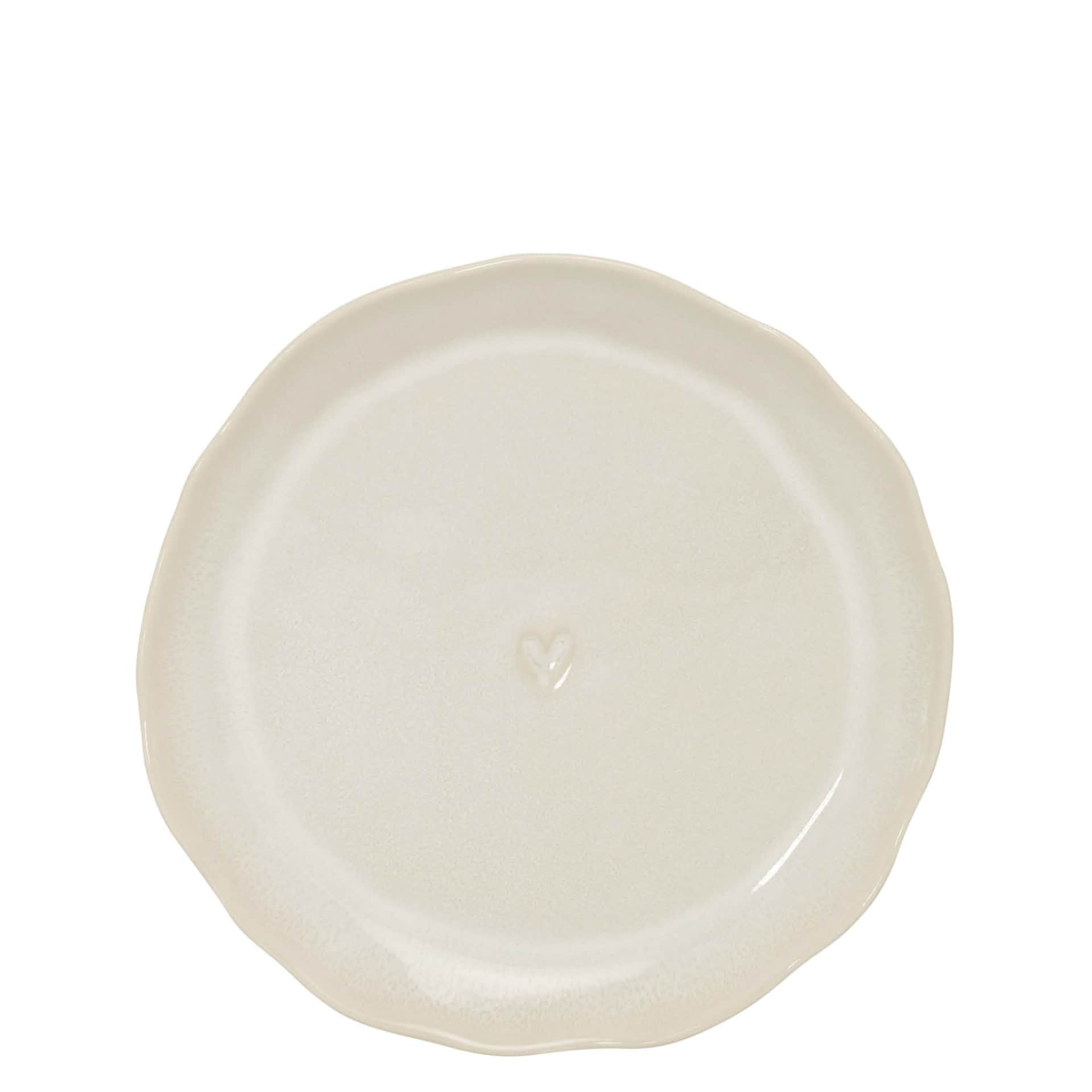 Zdobí ho jednoduchý malý motív srdca v strede, ktorý je typický pre túto značku. Glazúra vo farbe clay je tlmená, hrejivá, s nádychom béžovej a terakotovej. Je pokojná, harmonická a nadčasová. priemer 18 cm Vyrobené z keramiky.