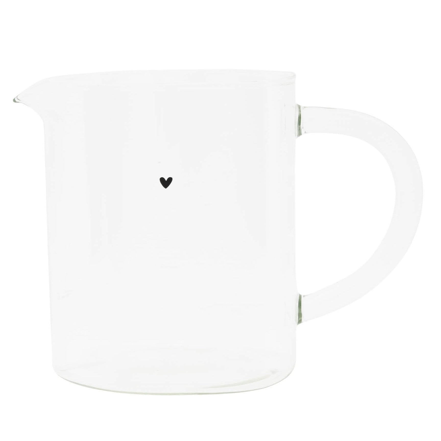 Doprajte si osvieženie a podávajte nápoje v tomto štýlovom džbániku s minimalistickým čiernym srdiečkom. priemer 10 cm / výška 14 cm Vyrobené zo skla.