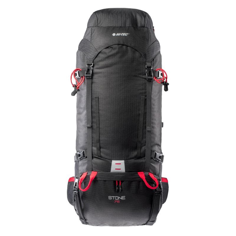 Batoh Hi-tec Stone 75 Vlastnosti: objem: 75 l; rozmery: 73 x 34 x 32 cm hmotnosť: 2,1 kg; vrecká: hlavná priehradka, dve bočné vrecká, spodné vrecko s vekom ergonomicky tvarovaný chrbát; vetracie panely na chrbte reflexné prvky nastaviteľný systém pohodlného nosenia hrudný popruh bedrový pás kompresné popruhy popruhy na ďalšie príslušenstvo kryt proti dažďu priestranný a ľahký. Materiál: materiál: 100% polyester Farba: polyester: polyester: čierna