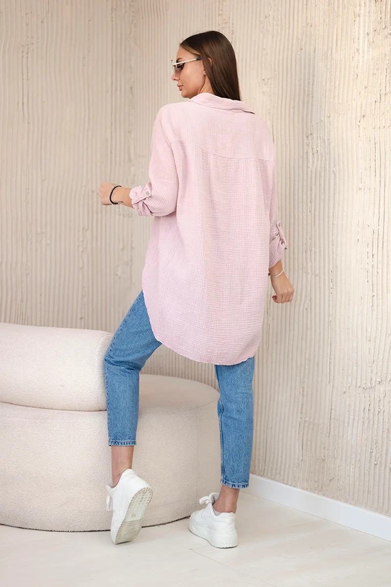 Bavlnená mušelínová košeľa oversize tmavo púdrovo ružová UNI