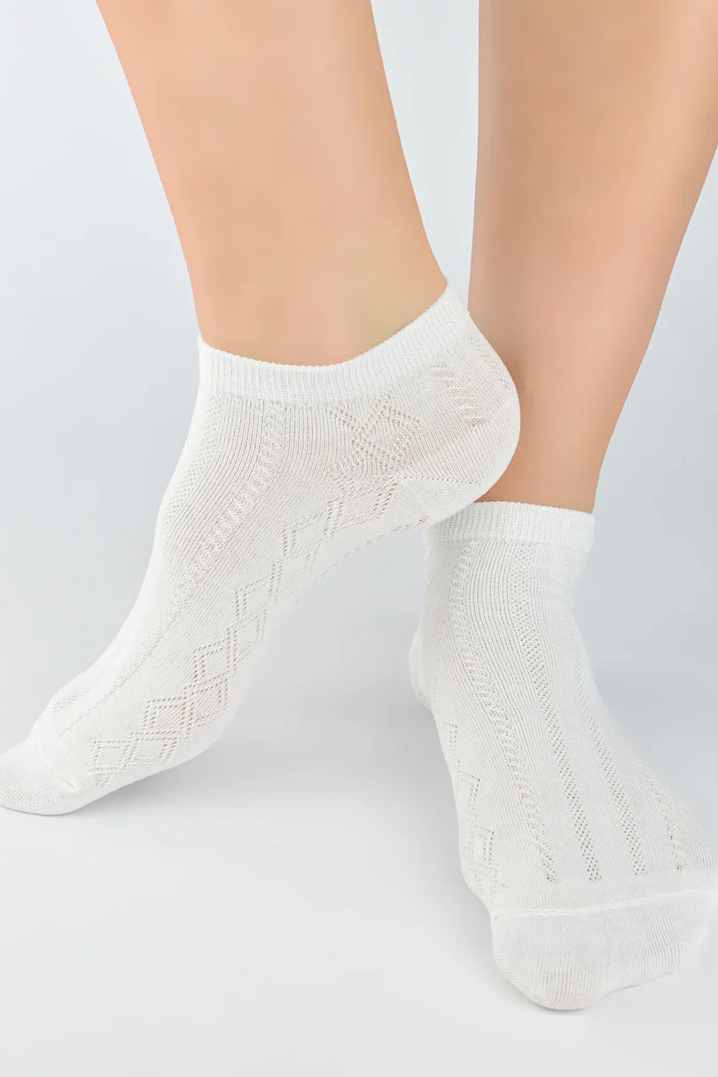 Bavlnené ponožky ST061 značky Noviti sú návrhom pre ľudí, ktorí ocenia pohodlie a módny vzhľad každý deň. Vzorované, ľahké a vyrobené zo vzdušnej bavlny budú ideálne na jar, leto a každodenné používanie doma, v práci alebo v škole. Vďaka použitiu elastanu a polyesteru sú podrážky pružné, dobre priliehajú k nohe a pri nosení sa nezošmykujú. Moderný vzor im dodáva charakter a dobre sa hodí k športovej a bežnej obuvi.