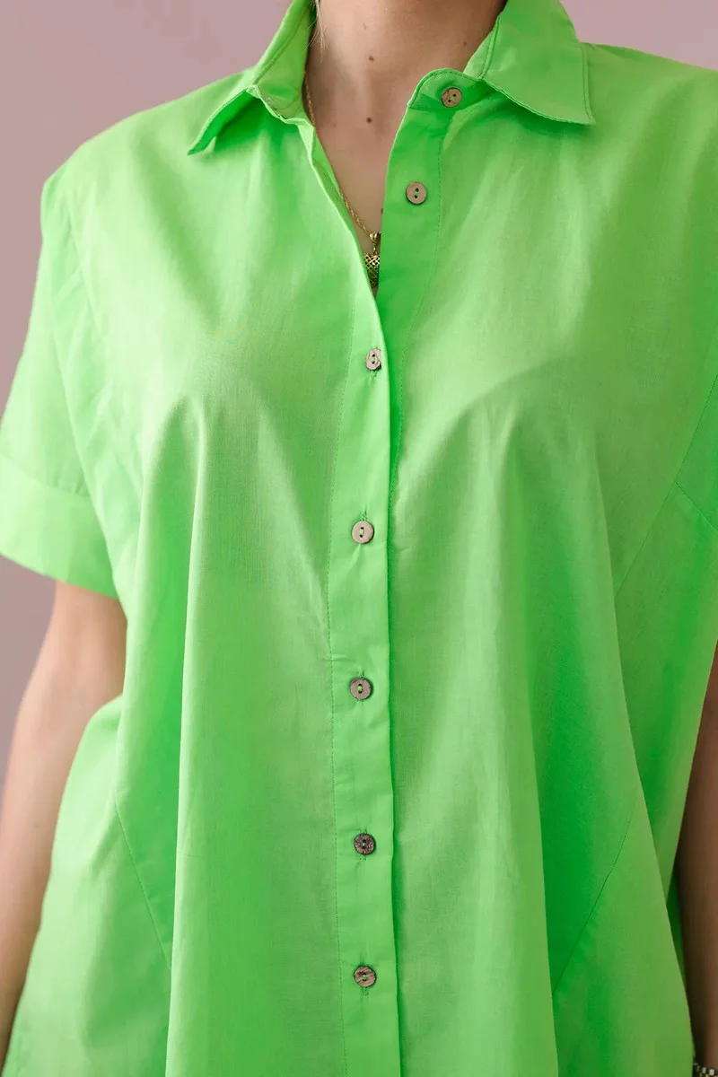 Bavlnená košeľa s krátkym rukávom je ideálnou voľbou na teplé dni a spája eleganciu s pohodlím. Košeľa je vyrobená z kvalitnej bavlny a poskytuje nielen príjemný pocit na pokožke, ale aj dobré vetranie a voľnosť pohybu. Krátke rukávy dodávajú košeli ľahkosť a ležérnosť, takže je ideálna do práce, na bežné stretnutia alebo do spoločnosti. Vďaka univerzálnemu strihu je bavlnená košeľa s krátkym rukávom nepostrádateľnou súčasťou šatníka každej ženy, ktorá si cení štýl a pohodlie. Veľkosť je univerzálna a bude vhodná pre ženy, ktoré nosia veľkosť S, M alebo L. TURECKÁ VÝROBA Materiálové zloženie: materiálové zloženie: 100 % bavlna Nižšie uvedené miery sú rovné +/- 1 cm Ak chcete získať obvodovú mieru, šírku vynásobte 2 Rozmery: Šírka v podpazuší: 74 cm Celková dĺžka vpredu: 72 cm/vzadu: 76 cm Recept na pranie: Pred čistením oblečenia si vždy prečítajte pokyny na pranie uvedené na vnútornom štítku. Perte pri maximálnej teplote 30 °C, žehlite pri maximálnej teplote 110 °C, Nebieľte ani nechlórujte, Čistite chemicky v benzíne, Nesušte v bubnovej sušičke.
