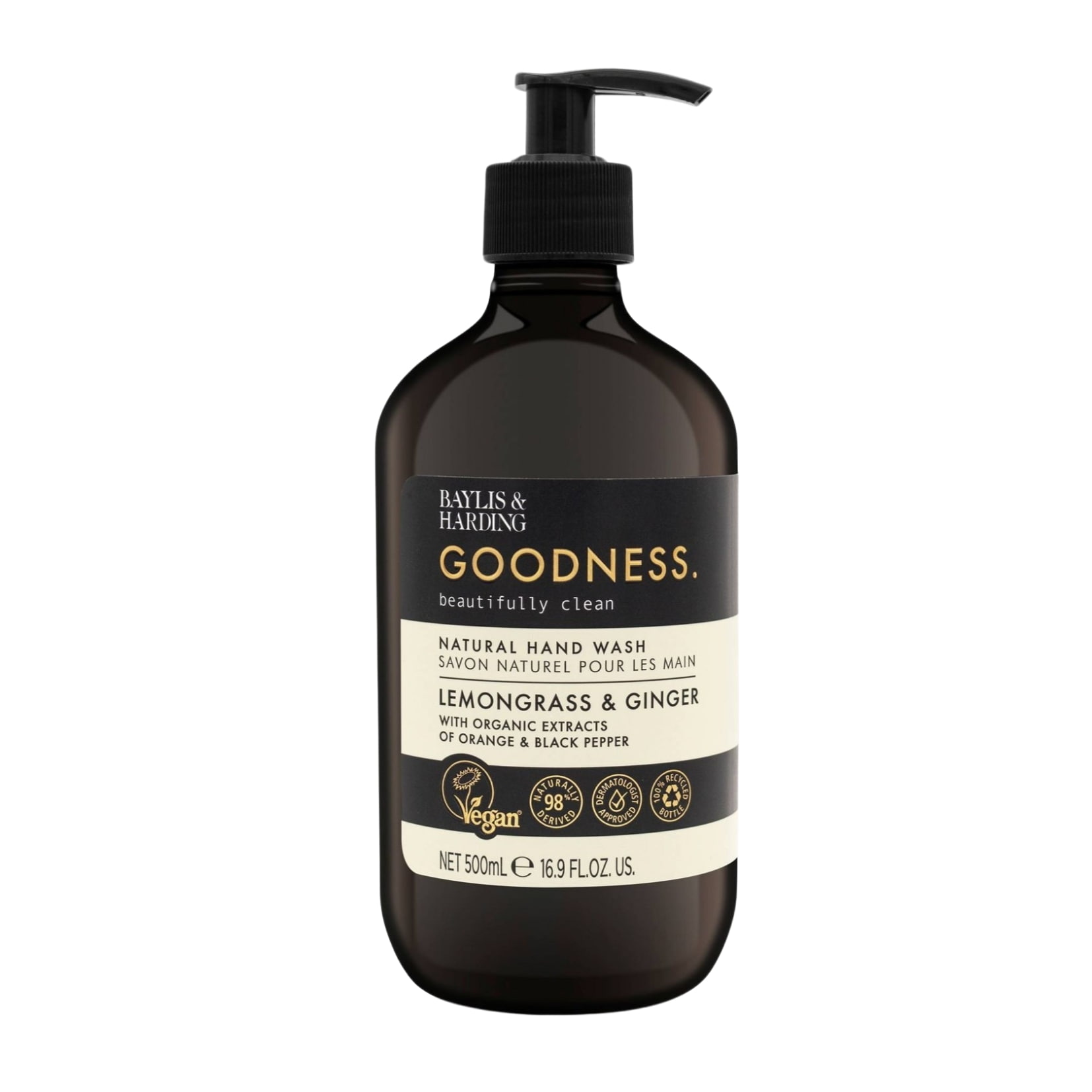 Kolekcia ošetrujúcej kozmetiky Goodness obsahuje 98 % zložiek rastlinného pôvodu a prírodné esenciálne oleje. Konkrétne mydlo na ruky Lemongrass/Ginger je navyše obohatené o organický extrakt z pomaranča, čierneho korenia, citrusov, bergamotu, muškátového orieška, pačuli a škorice.