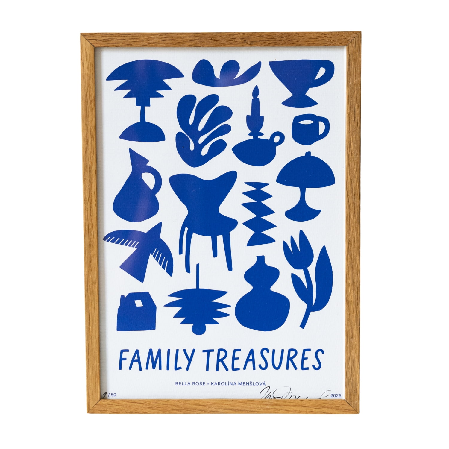 Signovaný umělecký tisk je výrazným a přesto všakpřirozeným prvkem interiéru. Originální motiv, v osobitém rukopisu Karolíny, minimalisticky vyobrazuje rodinné poklady a podtrhuje tak harmonickou atmosféru domova. Stejně jako celá kolekce i tisk krásně funguje v kombinaci s dalšími kousky i s těmi, které už doma dávno máte.